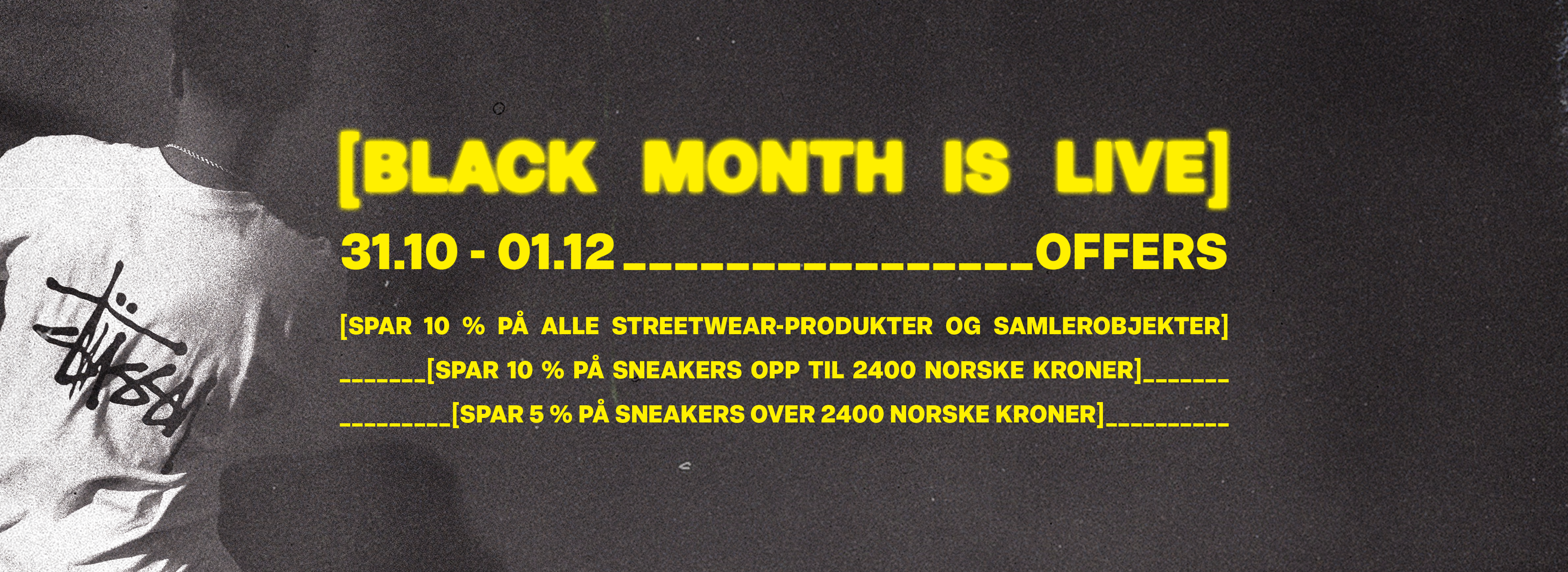 Hos STREET BILL markerer vi Black Month med spesialpriser på hele sortimentet vårt, med unntak av noen få ekstremt sjeldne produkter. Gjennom hele måneden vil du finne gode tilbud på ettertraktede modeller – men vær oppmerksom på at alle tilbud gjelder så lenge lageret rekker.